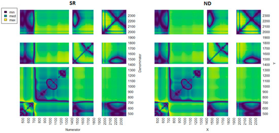 | vis-NIR + NIR-vis | (454 + 1240)/(454 −1240) | 0.77 | vis − NIR + NIR − vis | (751 + 496)/(751 − 496) | 0.65 | |||