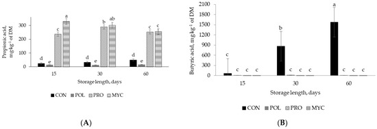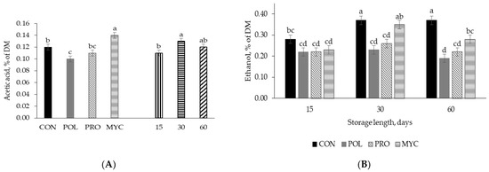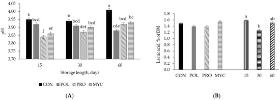 - Kung, L.; Smith, M.L.; Benjamim da Silva, E.; Windle, M.C.; da Silva, T.C.; Polukis, S.A. An Evaluation of the Effectiveness of a Chemical Additive Based on Sodium Benzoate, Potassium Sorbate, and Sodium Nitrite on the Fermentation and Aerobic Stability of Corn Silage. J. Dairy Sci. 2018, 101, 5949–5960. [Google Scholar] [CrossRef]