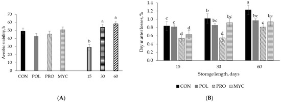 - Hu, W.; Schmidt, R.J.; McDonell, E.E.; Klingerman, C.M.; Kung, L. The Effect of Lactobacillus Buchneri 40788 or Lactobacillus Plantarum MTD-1 on the Fermentation and Aerobic Stability of Corn Silages Ensiled at Two Dry Matter Contents. J. Dairy Sci. 2009, 92, 3907–3914. [Google Scholar] [CrossRef] [PubMed]