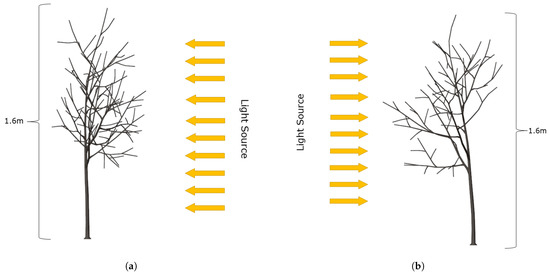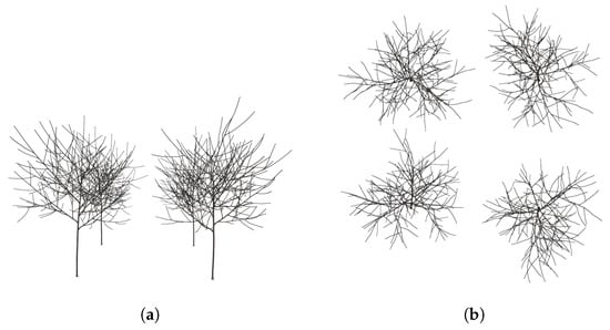 - Xia, N.; Li, A.; Lin, W. Simulation and Quantitative Analysis of Branching Patterns of the Plum Tree. J. Comput. Sci. Technol. Updat. 2014, 1, 9–18. [Google Scholar] [CrossRef]