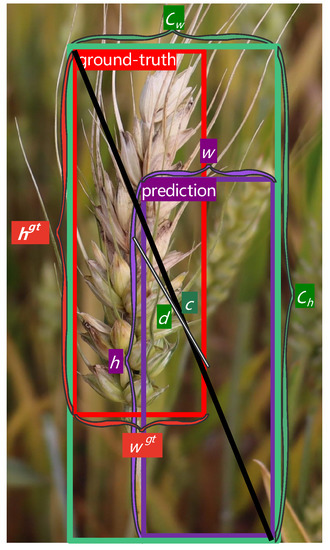 Figure 3. The EIoU loss for box regression. The h g t , w g t , w, h, C w , C h , d, and c are the same definition as Equation (6).