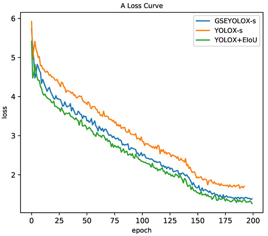 As shown in Table 3, the CBAM, SimAM, and EIoU all provided positive feedback to the model in terms of precision or light weight. Firstly, compared with the attention mechanism of CBAM, the SimAM achieved better results with 97.92% of mAP and without increasing the number of parameters. Secondly, although the accuracy of the model was slightly reduced by introducing G-head to YOLOX-s, the parameters of YOLOX-s + G-head were reduced by 9.84%. Additionally, when the G-head was combined with SimAM attention and EIoU loss, our proposed GSEYOLOX-s could not only reduce the parameters to 8.06 MB, but also increase the average precision of the model to 99.23%. Thirdly, as shown in Figure 4, the EIoU loss function can obtain the smaller loss value and accelerate convergence compared with the IoU loss function used in YOLOX-s. In summary, by uniformly applying the three above methods to the proposed model, the simultaneous tuning of model accuracy maximization and lightweight parameters was achieved.