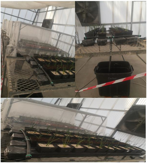 The experiment was set up in a greenhouse facility of the Cape Peninsula University of Technology (CPUT), Bellville campus, South Africa (33°55′56′′ S and 18°38′25′′ E). During the day, temperatures range between 21 and 26 °C, and between 12 and 18 °C at night. The photosynthetic photon flux density (PPFD) peaks at 1020 mol/m2/s, with a mean value of 420 mol/m2/s per day, while the relative humidity of the greenhouse is about 60%.