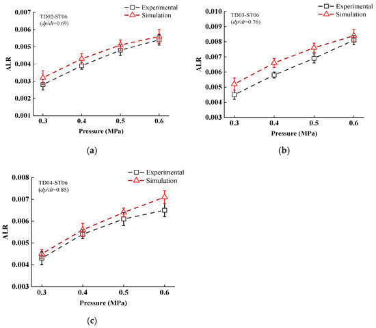 | Pressure (P)/MPa | Aperture Ratio (K) | Slit Width (V)/mm | ALR | Pressure (P)/MPa | Aperture Ratio (K) | Slit Width (V)/mm | ALR |