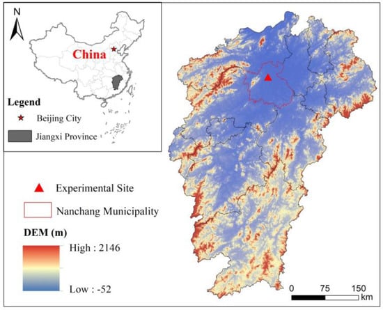 Location of the experimental site in Nanchang, Jiangxi, China. DEM means digital elevation model.