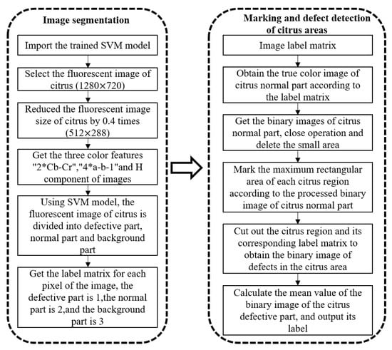 Fluorescence detection algorithm flow chart of citrus surface defects.