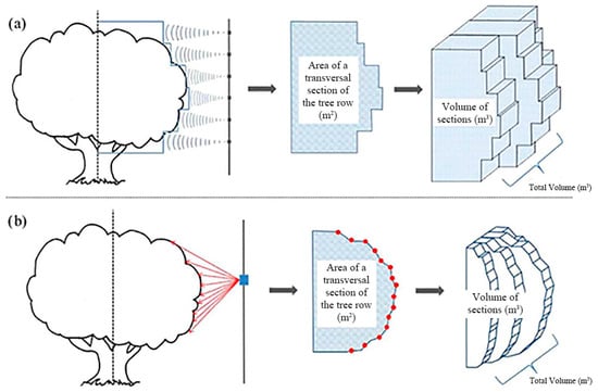 Measurement of target volume with ultrasonic (a) and LiDAR (b) sensors [].