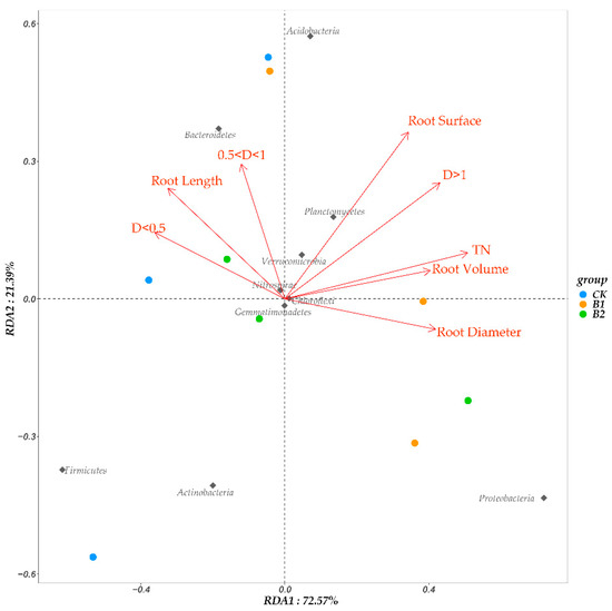 | Bacterial Phylum | RD | RL | RS | RV | D < 0.5 | 0.5 < D < 1 | D > 1 | TN | C/N | BD | SP |