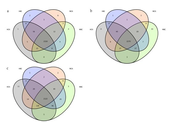 - Edgar, R.C. UPARSE: Highly accurate OTU sequences from microbial amplicon reads. Nat. Methods 2013, 10, 996. [Google Scholar] [CrossRef]