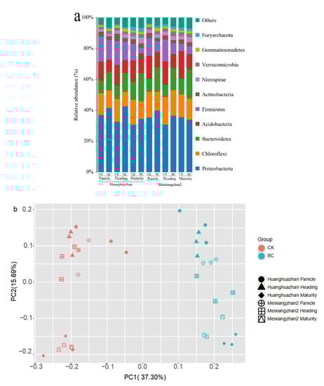 3.4. Effect of Biochar on the Rrhizosphere Microbial Community
