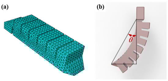In simulating and analyzing the soft actuator using ABAQUS software (version 6.14-4), the bending angle θ is taken as the main performance index. The specific measurement method is shown in Figure 6b: The bending angle θ of the soft actuator is the angle between the line from the bottom of the soft actuator to the top and the vertical line.
