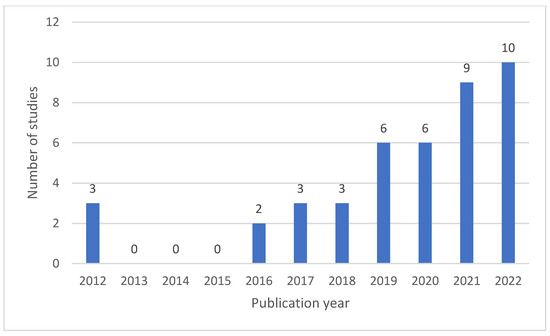 We classified the studies by year of publication to identify the evolution over time concerning the integration of technology into aeroponic systems. This analysis is essential as it shows the tendency in the interest of the research community in the field. Figure 5 shows the distribution of the reviewed studies.