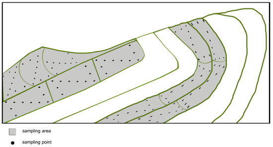 Soil samples from plots with different combinations of rotation systems (fava bean-oat and fava bean-wheat) and tillage regimes (no-till and mouldboard plowing) were collected at harvest in May 2013 at a depth of 0–20 cm using the methodology developed at the Soil Science Lab of the Kef Higher School of Agriculture (ESAK) in Tunisia. Each treatment was divided into three parts (1/3 ha), and 10 samples were taken from each part according to the “a” or “z” design, as indicated in Figure 2. Composite samples were obtained to characterize the whole soil; the remaining part was kept undisturbed in the laboratory in order to perform the physical soil analyses.