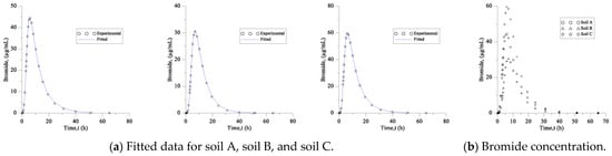 (a) Bromide breakthrough curves fitted with experimental data. (b) Bromide concentrations.