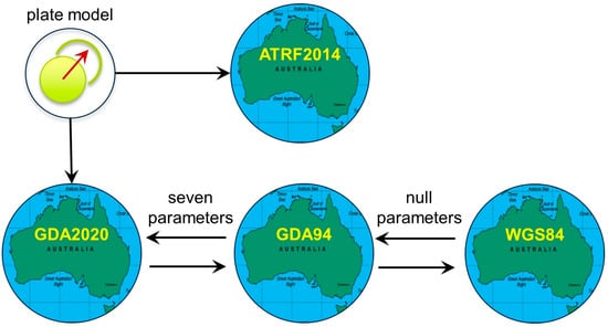 - Featherstone, W.E. An updated explanation of the geocentric datum of Australia (GDA) and its effects upon future mapping. Aust. Surv. 1996, 41, 121–130. [Google Scholar] [CrossRef]