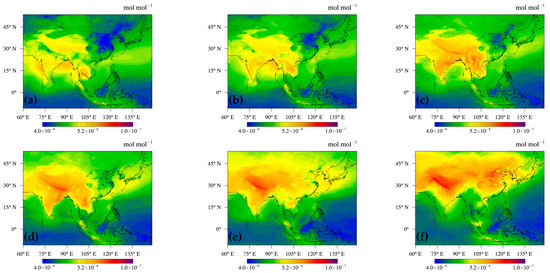 The following supporting information can be downloaded at: https://www.mdpi.com/article/10.3390/agronomy13102586/s1, Figure S1: Surface CH4 mixing ratio for 2010 at (a) January, (b) February, (c) March, (d) April, (e) May, (f) June, (g) July, (h) August, (i) September, (j) October, (k) November, and (l) December.; Figure S2: Vertical structure of zonal (30–40° N) CH4 for 2010 at (a) January, (b) February, (c) March, (d) April, (e) May, (f) June, (g) July, (h) August, (i) September, (j) October, (k) November, and (l) December.