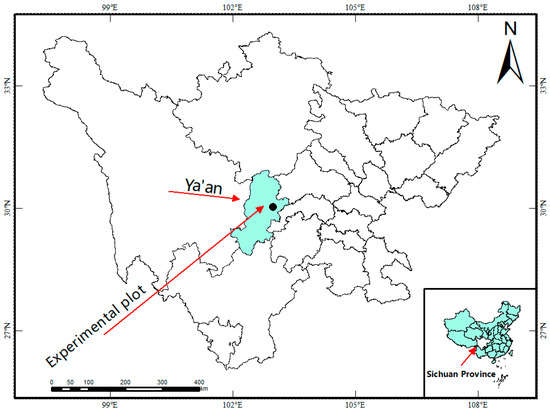 This experiment was conducted on cultivated land at the farm of Sichuan Agricultural University in Ya’an City, Sichuan Province, China (Figure 1).