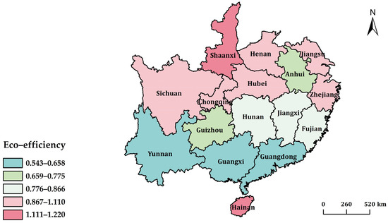 3.1. Calculation Results of Eco-Efficiency Based on the Super-Efficiency SBM Model