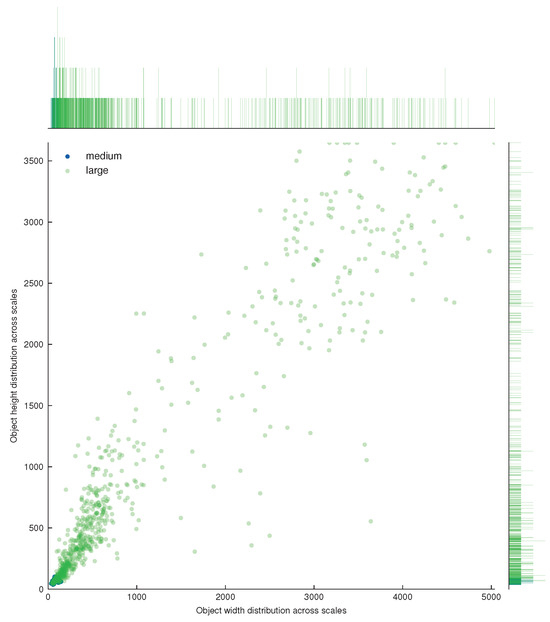 Microsoft Common Objects in Context (MS COCO) 2017 [37] is the leading large-scale benchmark dataset for generic object detection tasks. It is specifically designed to detect objects in their natural context. Compared to the PASCAL VOC dataset, MS COCO contains a larger number of categories and instances, with objects generally being smaller. This enables the training of more complex models capable of accurate localization. The object detection sub-dataset of MS COCO consists of 80 categories and includes 115,000 training images, 5000 validation images, and 20,000 test images that are not publicly accessible. To evaluate the performance of detectors on this dataset, submissions must be made to MS COCO’s evaluation server for independent evaluation. Unlike PASCAL VOC, the MS COCO evaluation measure is computed over 10 overlap threshold values, ranging from 0.5 to 0.95 in increments of 0.05. This rewards detectors that perform better in terms of localization accuracy. The metric allows for a maximum of 100 top-scoring detections per image. Given the presence of more small objects than large objects in the dataset, MS COCO also provides further distinctions based on the size of the objects: small (less than 32 × 32 pixels), medium (between 32 × 32 and 96 × 96 pixels), and large (greater than 96 × 96 pixels).