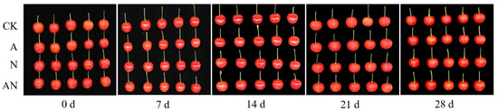 - Zhao, J.J.; Wang, B.; Cui, K.; Cao, J.; Jiang, W. Improving postharvest quality and antioxidant capacity of sweet cherry fruit by storage at near-freezing temperature. Sci. Hortic. 2019, 246, 68–78. [Google Scholar] [CrossRef]