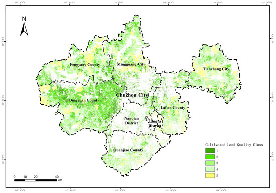 2.6. Cultivated Land Quality Level Evaluation