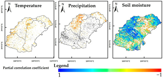 Partial correlation coefficients for temperature, precipitation, and soil moisture.