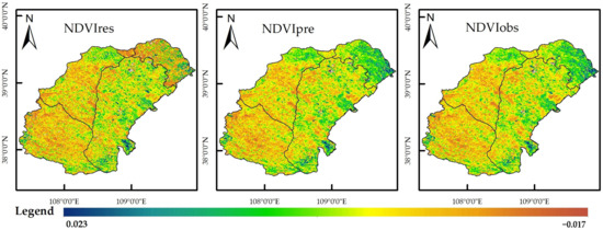 Trends in the residuals of the NDVIres, NDVIpre, and NDVIobs.