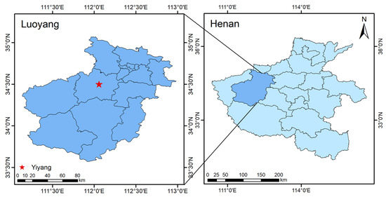 The experimental area was situated in China’s first tractor company limited intelligent agriculture demonstration farm in Yiyang County, Luoyang City, Henan Province, China, at coordinates 112°37′11.72″ E, 34°47′79.03″ N, belonging to the temperate continental monsoon-type climate. The area where the geographical coordinates are located is shown in Figure 1. The terrain in the experimental field was flat. The maize variety in this experiment was Zheng Dan 958, which was planted in rotation with wheat. The planting density is 67,000 plants m−2, the row spacing is 0.6 m, and the plant spacing is 0.2 m. Its management methods, such as irrigation, fertilization, pest, and weed control, were the same as those of local conventional farmland.