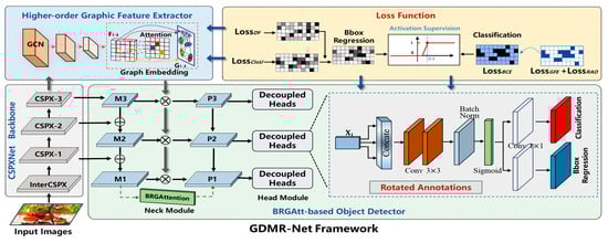 The overall structure of GDMR-Net is divided into four parts: a lightweight CSPXNet backbone, graph feature extractor, BRGAtt-based object detector, and loss function. The overall structural design of the proposed method is shown in Figure 1.