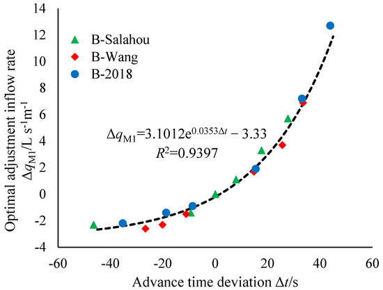 where ΔqM2 is the second optimal adjustment inflow rate (L s−1 m−1), and Δt2 is the deviation value between the actual advance time and the expected advance time at 70 m (s).
