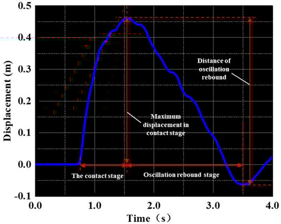 According to Table 4, at the same driving velocity, the maximum displacement of the rice stems during the contact and oscillation stages is higher at a canopy opener height of 0.5 m than at other heights. This is because the canopy opener acts on the middle part of the rice stem at this height, allowing for more contact and increasing the degree of rice stem bending, resulting in larger displacement. When the canopy opener is at a height of 0.7 m, it acts on the upper part of the rice stem, creating a shorter contact time and a smaller degree of bending due to the increased height, resulting in a lower maximum displacement during the contact stage than at other heights. As the height of the canopy opener increases, the degree of bending of the rice stem decreases, resulting in a decrease in displacement during the contact stage with increasing canopy opener height.