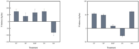 | Crop Season | Treatment | Plant N Content (g/kg) | Plant P Content (g/kg) | Total N Uptake (kg/ha) | Total P Uptake (kg/ha) |