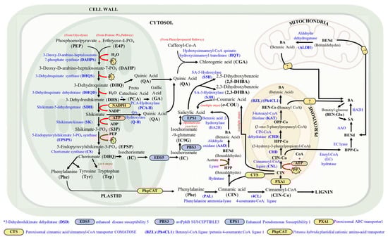- Maeda, H.; Dudareva, N. The Shikimate Pathway and Aromatic Amino Acid Biosynthesis in Plants. Annu. Rev. Plant. Biol. 2012, 63, 73–105. [Google Scholar] [CrossRef]