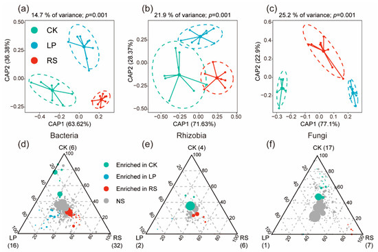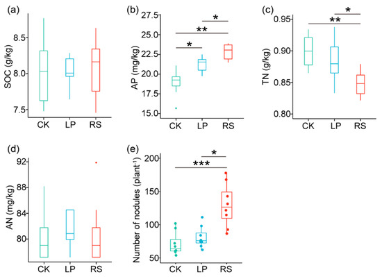 - Han, Q.; Ma, Q.; Chen, Y.; Tian, B.; Xu, L.; Bai, Y.; Chen, W.; Li, X. Variation in rhizosphere microbial communities and its association with the symbiotic efficiency of rhizobia in soybean. ISME J. 2020, 14, 1915–1928. [Google Scholar] [CrossRef]