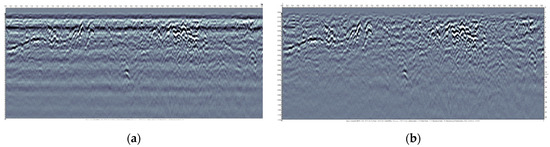 The B-scan images obtained from ground-penetrating radar detection were pre-processed, and the operation procedure was referred to Section 2.4, with the pre-processed results shown in Figure 16.