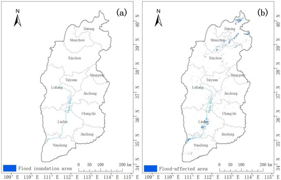 Image maps of the (a) flood inundation area and (b) flood-affected area.