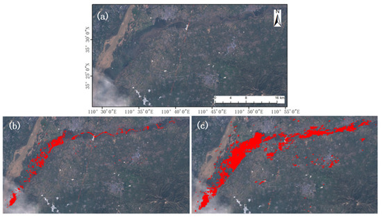 In order to verify the precision and portability of the developed method, four seriously flooded regions (Figure 1c), were selected to evaluate the precision of the extraction results. The flood events in Shanxi Province were used for testing.