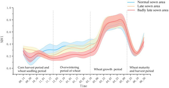 - Based on the distribution of the flood-affected areas, the total crop failure area was extracted easily and quickly, and the effect of the late sowing on the growth of the winter wheat was analyzed.