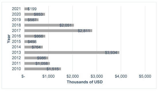 Cocoa exports 2010–2021. Source: own elaboration with data from SAGARPA, several years.