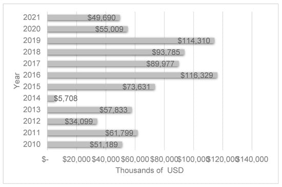 - Trade Map (Estadísticas del Comercio para el Desarrollo Internacional de las Empresas). 2017. Available online: http://www.trademap.org (accessed on 2 March 2022).