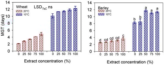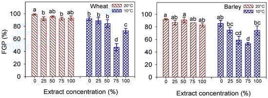 | Extract Concentration (%) | Barley (cv. Alamo) | |||||||