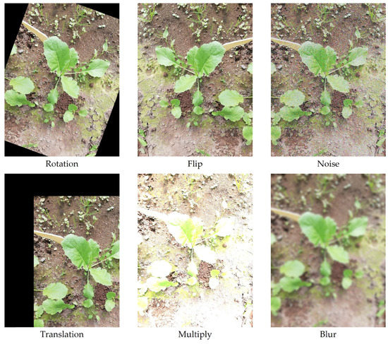 Data augmentation was used to increase the number of images, improving the overall learning procedure and performance by inputting variability into the dataset [23]. The transformations were carefully chosen, applying those that could happen under actual conditions, as displayed in Figure 2. The data transformations were applied to training and validation sets. The same transformations were applied to RGB images and the corresponding greyscale images (Table 4).