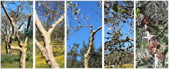 - Young, J.M. Olive knot and its pathogens. Australas. Plant Pathol. 2004, 33, 33–39. [Google Scholar] [CrossRef]