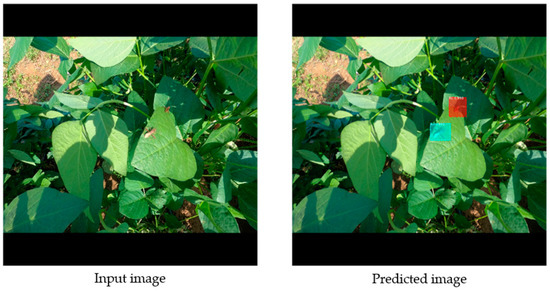 R. pedestris, a major soybean pest, spreads throughout the soybean field, causing significant damage to the growth and yield every year. Supplementary Figure S1a depicts the occurrence of and damage by R. pedestris in soybean fields and the plate-shaped pods caused by R. pedestris. As the density of R. pedestris in soybean fields increases, the vitality of the soybeans is diminished. However, the symptoms of plant damage are visible beneath the canopy of the leaves. Therefore, we considered using a UGV to observe pests directly above the ground near the plants [54]. After pre-processing and augmentation, the accumulated R. pedestris videos and images were used as training, validation, and test datasets for the AI-based object detection model. The manufactured model (MRCNN, YOLOv3, Detectron2) is built with a relatively lightweight algorithm compared to the state-of-art model (YOLOv5, YOLOv7, U-net, and more), making it suitable for beginner challenging studies in agronomy. In addition, agricultural managers can quickly obtain information about insect pests using a portable web application. Furthermore, the early detection of R. pedestris through the pest management process via a UGV detection network and AI object detection can help to prevent the occurrence of plate-shaped pods and infected pods in soybean fields. Therefore, it is necessary to actively predict the occurrence of R. pedestris when making early decisions on pesticide treatments.