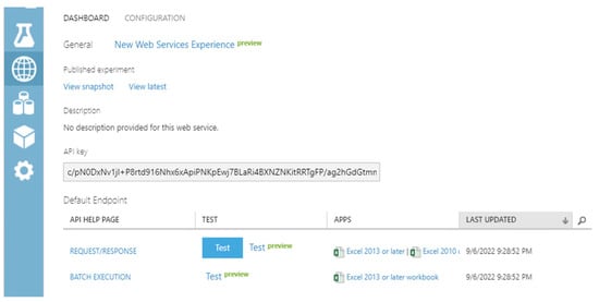 - Barga, R.; Fontama, V.; Tok, W.H. Predictive Analytics with Microsoft Azure Machine Learning; Apress: Berkeley, CA, USA, 2015; ISBN 978-1-4842-1201-1. [Google Scholar]