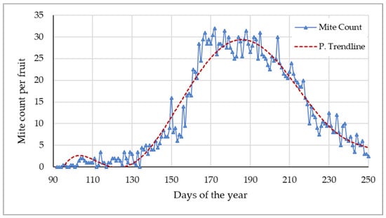 - Palevsky, E.; Borochov-Neori, H.; Gerson, U. Population Dynamics of Oligonychus afrasiaticus in the Southern Arava Valley of Israel in Relation to Date Fruit Characteristics and Climatic Conditions. Agric. For. Entomol. 2005, 7, 283–290. [Google Scholar] [CrossRef]