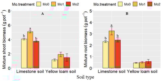 The Effect of Molybdenum Fertilizer on the Growth of Grass–Legume Mixtures Related to Symbiotic Rhizobium