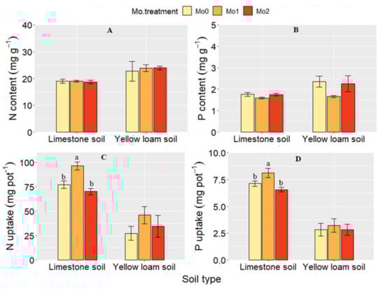 - Liu, H.; Hu, C.; Hu, X.; Nie, Z.; Sun, X.; Tan, Q.; Hu, H. Interaction of molybdenum and phosphorus supply on uptake and translocation of phosphorus and molybdenum by Brassica napus. J. Plant Nutr. 2010, 33, 1751–1760. [Google Scholar] [CrossRef]