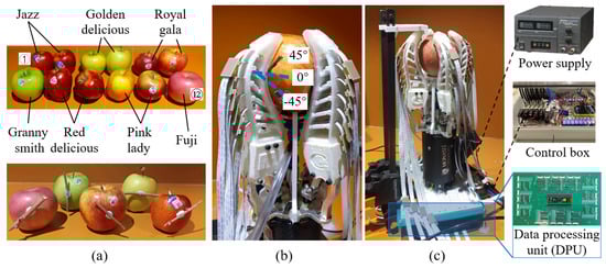 - Zhang, Z.; Zhou, J.; Yan, Z.; Wang, K.; Mao, J.; Jiang, Z. Hardness recognition of fruits and vegetables based on tactile array information of manipulator. Comput. Electron. Agric. 2021, 181, 105959. [Google Scholar] [CrossRef]