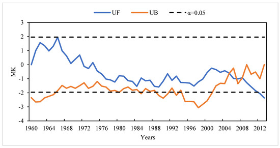 Figure 4. The abrupt point test for runoff of the Nuozhadu Reservoir.